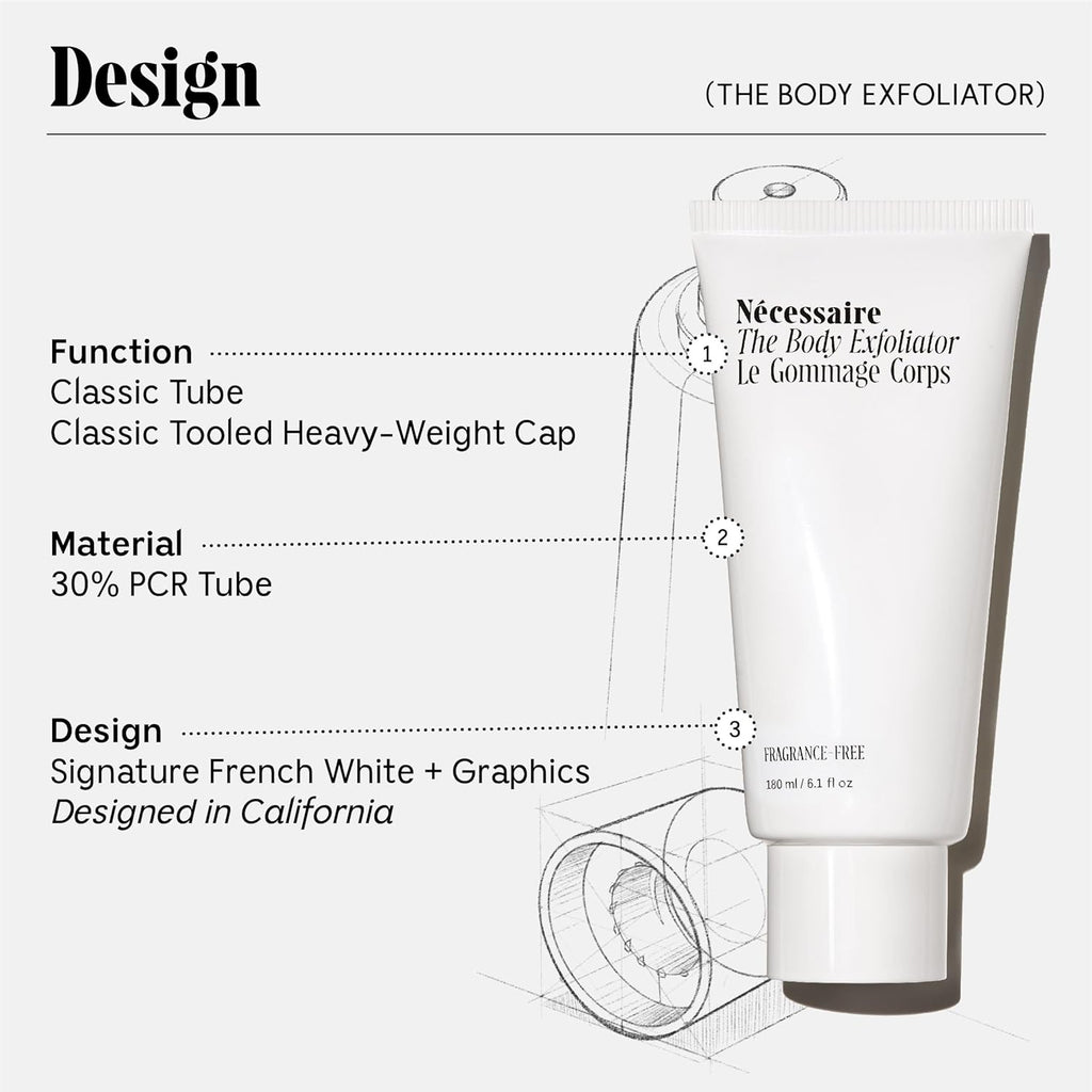 The Body Exfoliator combines 6.5% physical and 1.25% chemical exfoliants with AHA, BHA, PHA, charcoal bamboo, and volcanic pumice to detoxify and resurface skin effectively. Formulated on a plant surfactant base, this hypoallergenic, dermatologist-tested, non-comedogenic, fragrance-free treatment is free from SLS/SLES, cruelty-free, and certified vegan. Designed for weekly use, it gently foams to cleanse and renew the skin, leaving it smooth and revitalized. Packaged in a 30% post-consumer recycled tube, it reflects a commitment to sustainability and certified B Corp standards.