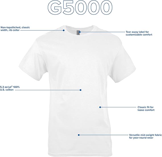 This multipack of Unisex Adult Heavy Cotton T-Shirts, Style G5000, offers durable, high-quality fabric designed for everyday wear. Crafted from heavyweight cotton, these shirts provide a comfortable fit and long-lasting performance. Ideal for layering or standalone use, they suit a variety of activities and styles, making them a versatile addition to any wardrobe.